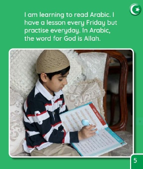 Yusuf and his family are Muslims. They follow the religion called Islam. The word Islam means peace. Muslims find peace through living a life which is in obedience to Allah. To be a Muslim, one must follow the Five Pillars of Islam, which provide a clear structure and code of conduct for life. These pillars require Muslims to believe there is one God and that Muhammad is his messenger; pray five times a day; fast during the month of Ramadan; give to charity, make a pilgrimage to Makkah at least once in a lifetime if one is able.